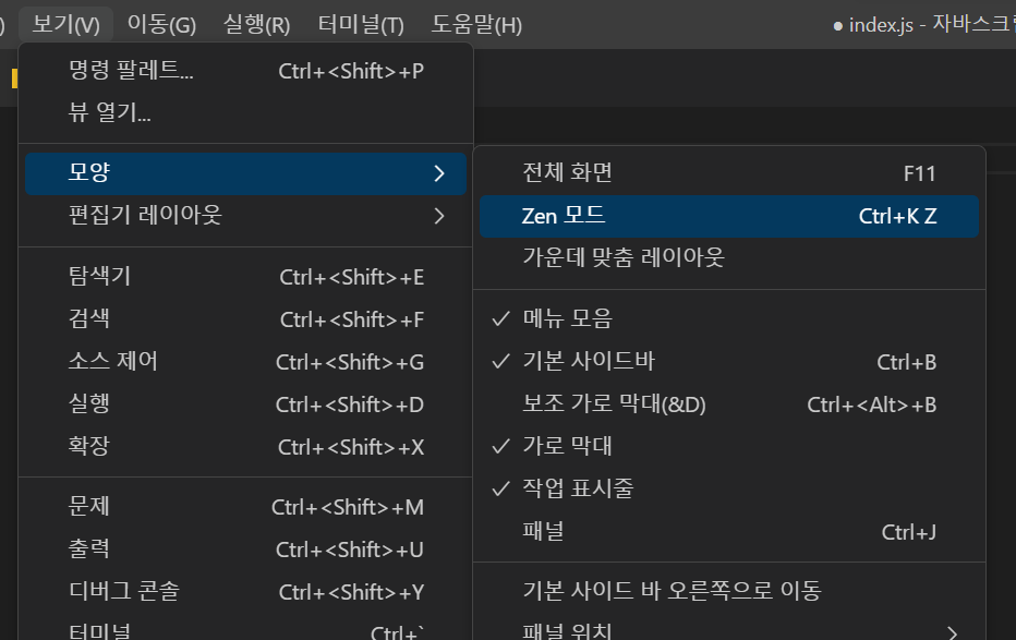 그 다음 보기 -> 모양 -> 패널을 클릭한다.