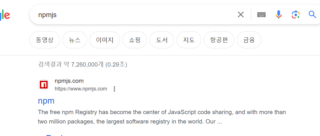 nmpjs를 검색하면 제일 위에 뜨는 사이트 클릭하기