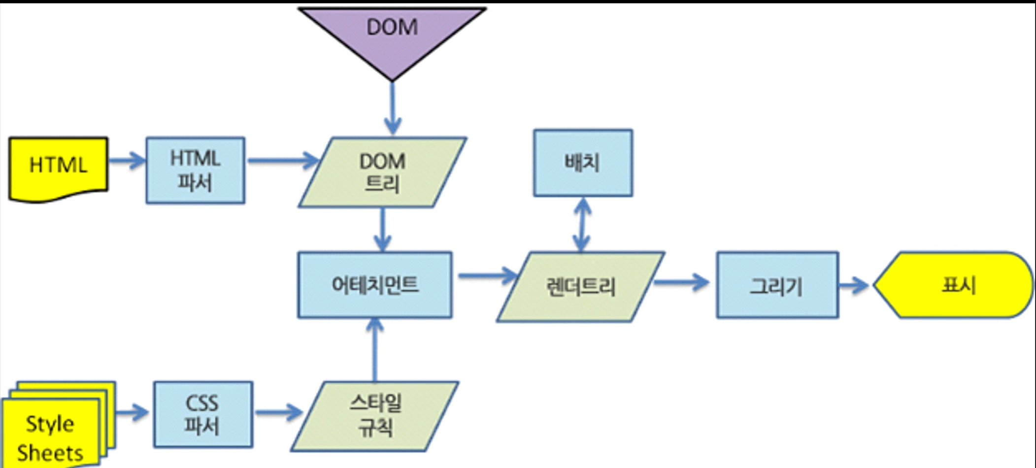그리고 Dom은 이러한 과정을 거쳐 화면에 표시된다.