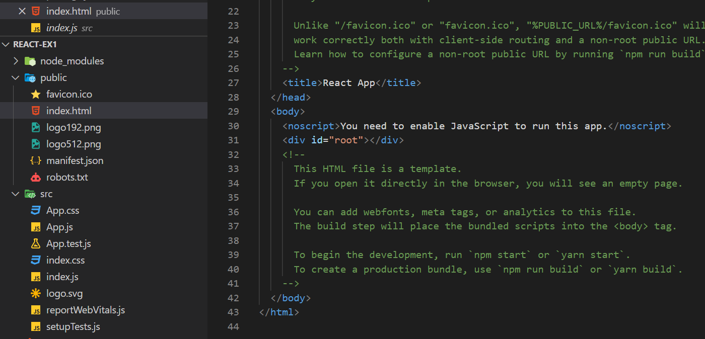 public내에 있는 index.html에 있다. 결론적으로 index.js가 App.js로부터 받은 값을 index.html를 통해서 화면에 띄운다.
