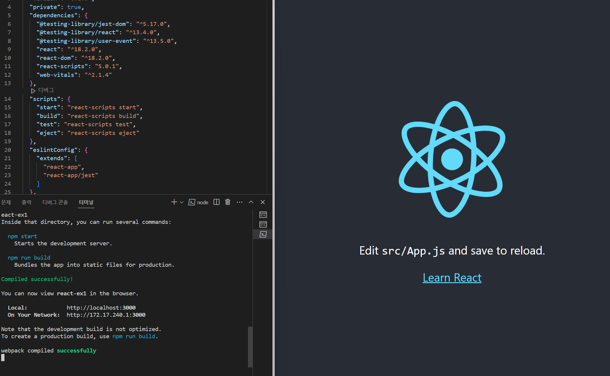 리액트 앱을 종료시키려면 ctrl + c를 누르면 된다.