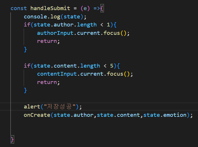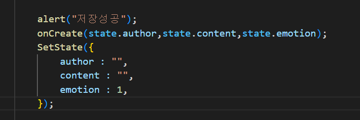 다이어리의 마지막 저장 단계인 handleSubmit함수에서 onCreate에 state의 값을 넣는다.