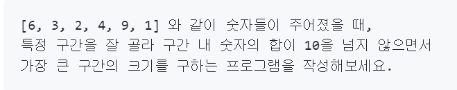 투포인터는 두 곳을 가르키는 변수가 있고 이 두 변수를 옮겨가면서 문제를 푸는 방식입니다.