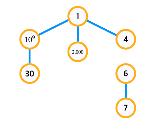 하지만 위와 같이 10^9의 수를 가진 노드가 존재한다면 LIst를 10^9개 만들어야하므로 시간적, 메모리적 낭비가 심하다. 그래서 각 노드에 번호를 붙여서