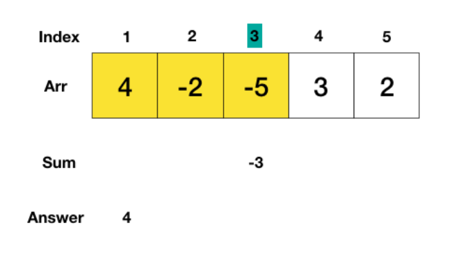 위와 같은 경우에는 -5를 만난 직후 SUM이 음수가 됩니다. 이 때 여기서 3을 더하면 -2가 되지만, 새로운 구간을 3에서부터 시작한다면 SUM이 3이 됩니다(음수를 더하면 무조건 총합이 작아진다). 이로 인해 이제까지의 구간의 합이 음수라면 다음 INDEX부터 새로운 구간을 시작하는 것이 무조건 더 큰 합을 만들 수 있다는 것을 알 수 있습니다.