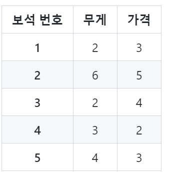 위와 같이 보석들이 주어지고, 이를 담을 수 있는 가방이 주어졌다고 하자.