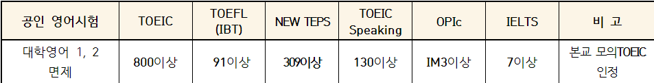 여기서 주의하셔야 할 점이, 대학영어를 면제받는다고 해서 학점을 채우지 않아도 된다는 이야기가 아닙니다.