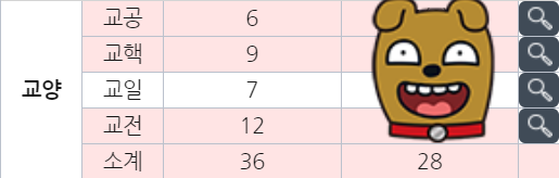다시 위에 교양 화면을 보면 6 + 9 + 7 + 12 하면 34인데 36을 채워야 한다고 쓰여있죠?