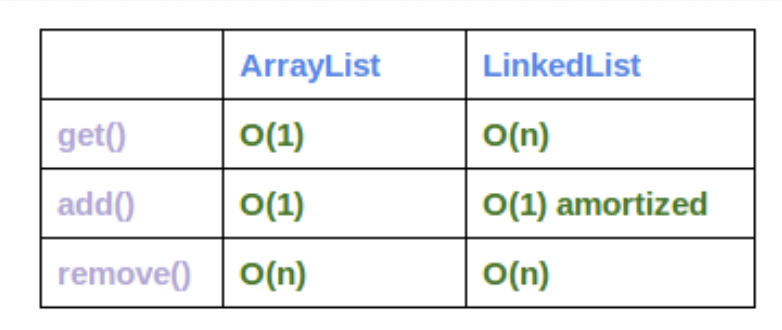 데이터를 검색하는 시간복잡도가 ArrayList는 O(1)이고 LinkedList O(n) 인 것을 알 수있다.