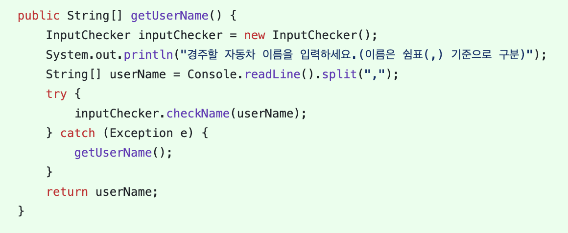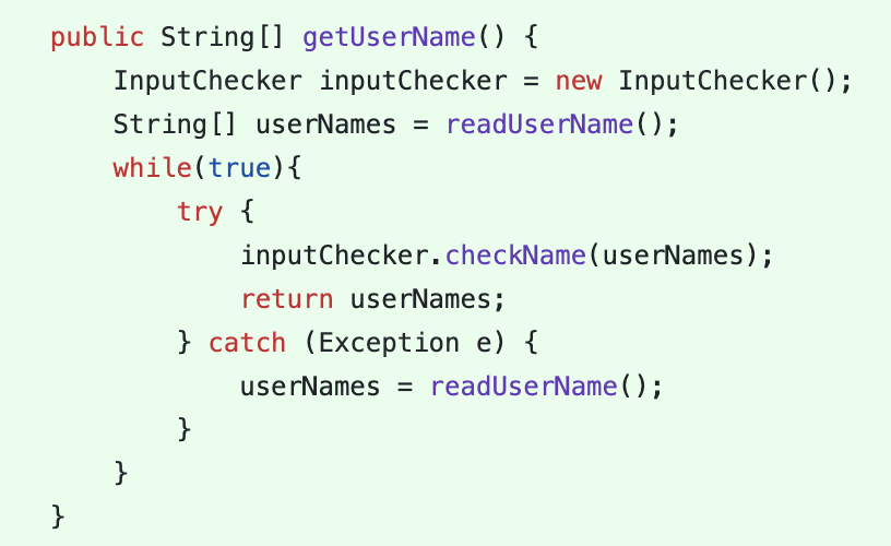 구현해야하는 기능들 중에 입력을 잘못 받으면 에러를 발생시키고 새로 입력받는 부분이 있었다.