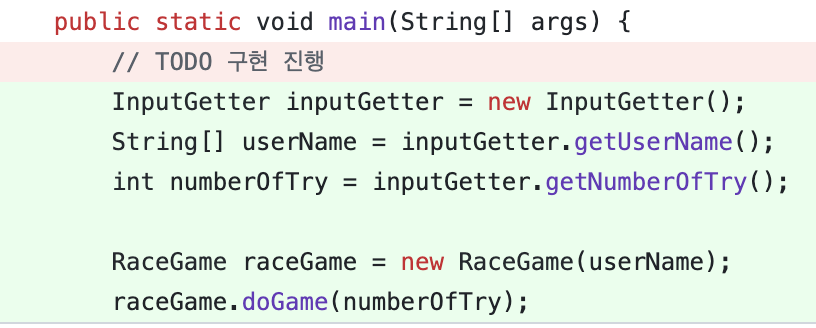 나는 후자를 선택하여 Car객체에 있는 position 상태를 숨기고자 각 car의 position을 나타내는 string을 만드는 메서드를 car클래스 내에 선언했다.