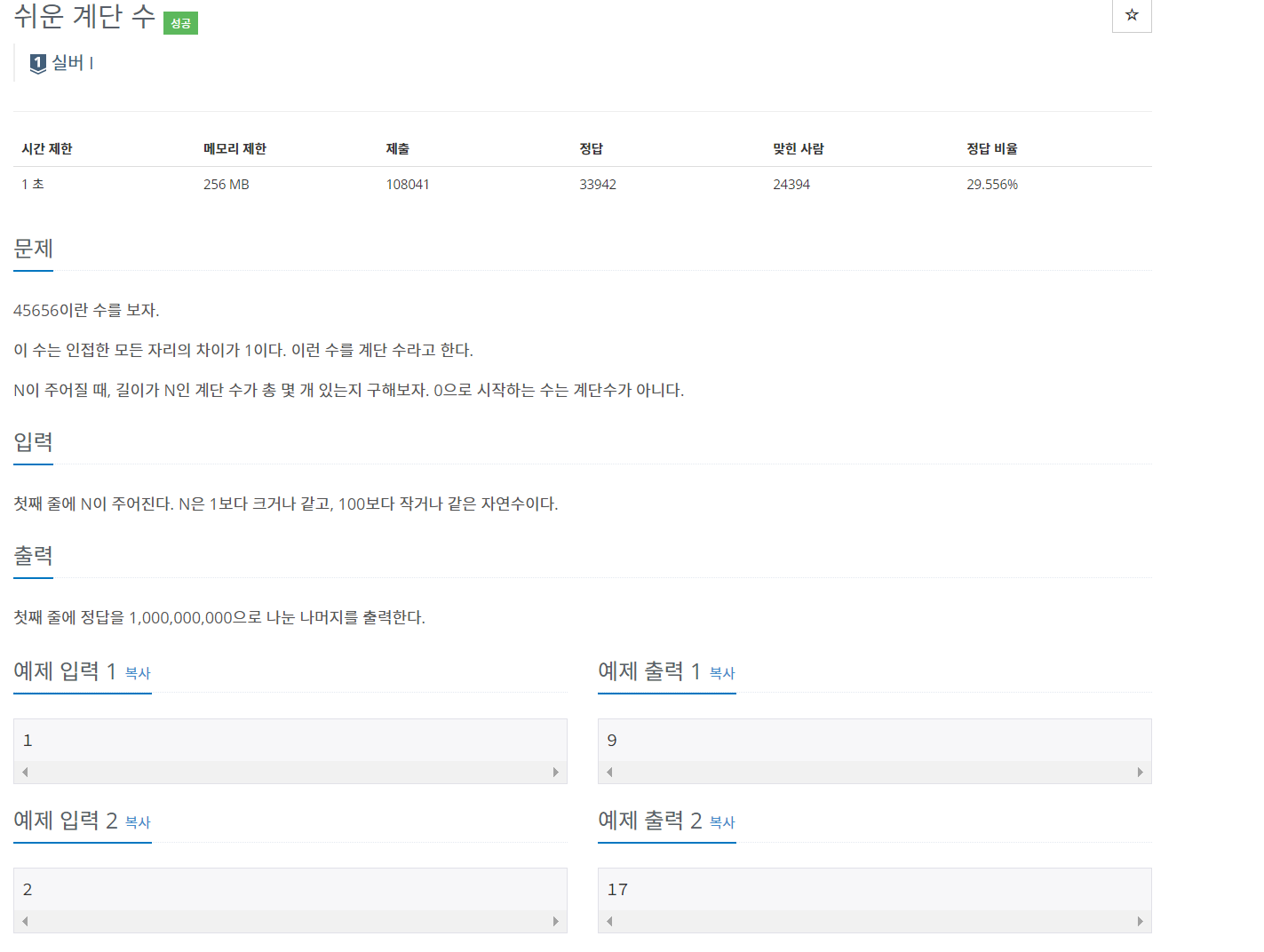 처음 이 문제를 봤을 때는 무슨 말인지 이해가 잘 되지 않아서 여러번 읽어봤다. 한마디로 n자리수들 중에서 인접한 수의 차이가 모두 1인 수들의 갯수를 구하라는 문제이다.