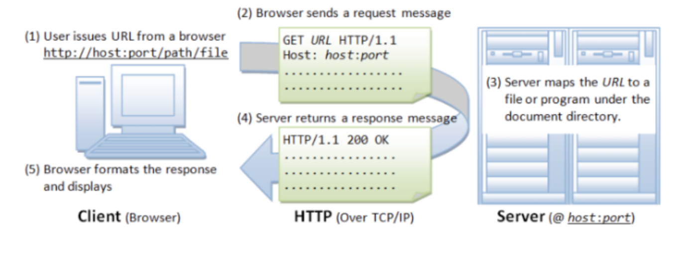 클라이언트 : 정보를 요청하는 사용자. 웹 브라우저가 이 역할을 한다. 사용자가 웹 브라우저를 통해 웹페이지를 요청하면 이 요정이 HTTP메세지로 웹 서버로 전송된다.