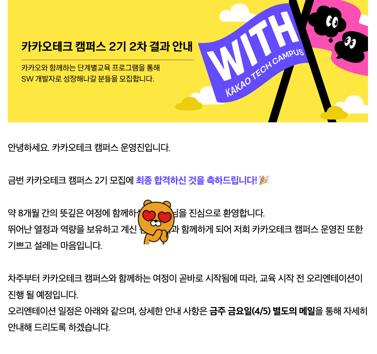 두 단계의 선발과정을 거치고, 거의 잊고 살았지만 발표날인 4월 1일이 되니까 좀 긴장됐었다....