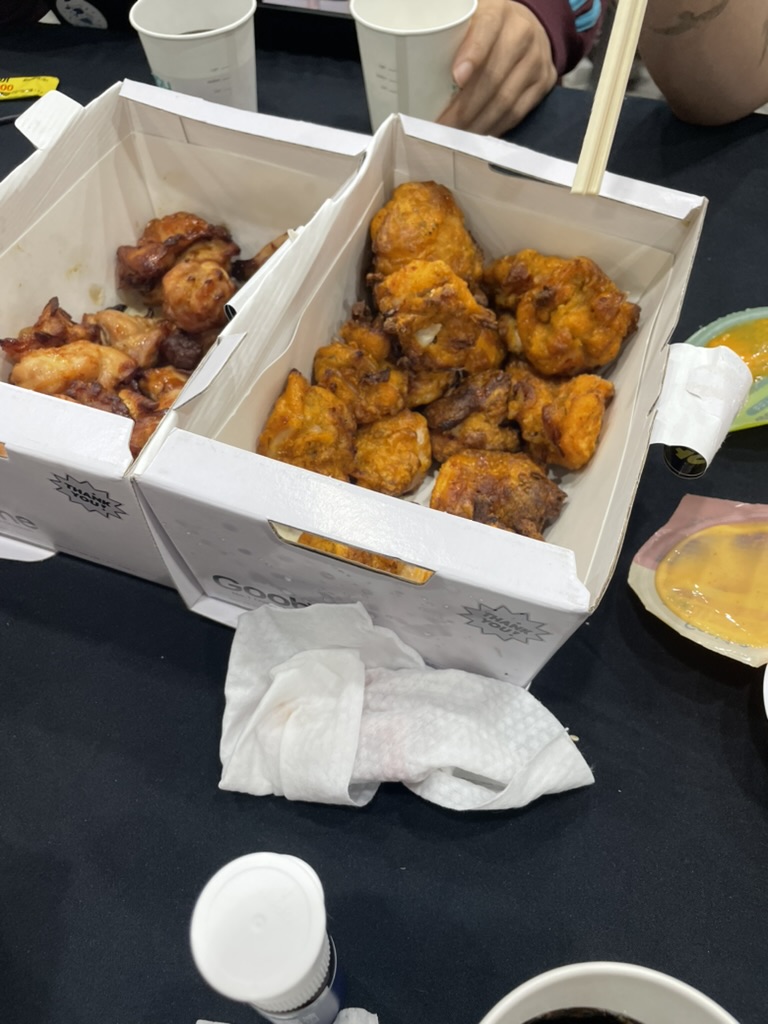 제출 후 3시간정도 배달음식을 시켜먹을 수 있는 시간을 준다. 우리는 굽네치킨을 먹었다.