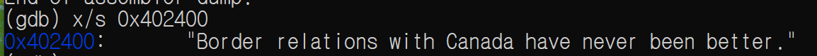 이 때 제가 x/s등의 명령어로 레지스터 값을 확인하면 현재 위치인 mov코드가 실행될 때의 값을 확인할 수 있는 것이다.