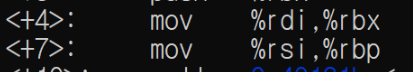 그럼 이값들을 받는 rbx와 rbp가 코드에서 어떤 식으로 쓰이는지 보겠다.