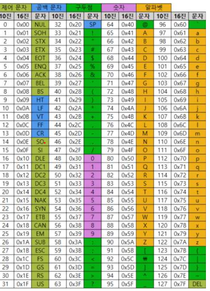 이렇게 한 byte에 char 하나가 들어있는 것을 볼 수 있다.