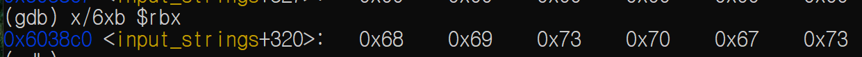 이것은 0x4024b0에는 m이 들어있고, 0x4024b0 + 0x1이면 a가 들어있다는 것을 의미한다.