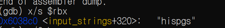 바로 반복문을 다 수행한 후 rdi에 넣는 과정에 사용된다. 아까 $0x40245e에는 flyers가 들어있는 것을 확인했다. 즉 반복문의 결과물이 들어있는 0x10+rsp에는 flyers가 들어있어야한다는 것이다.