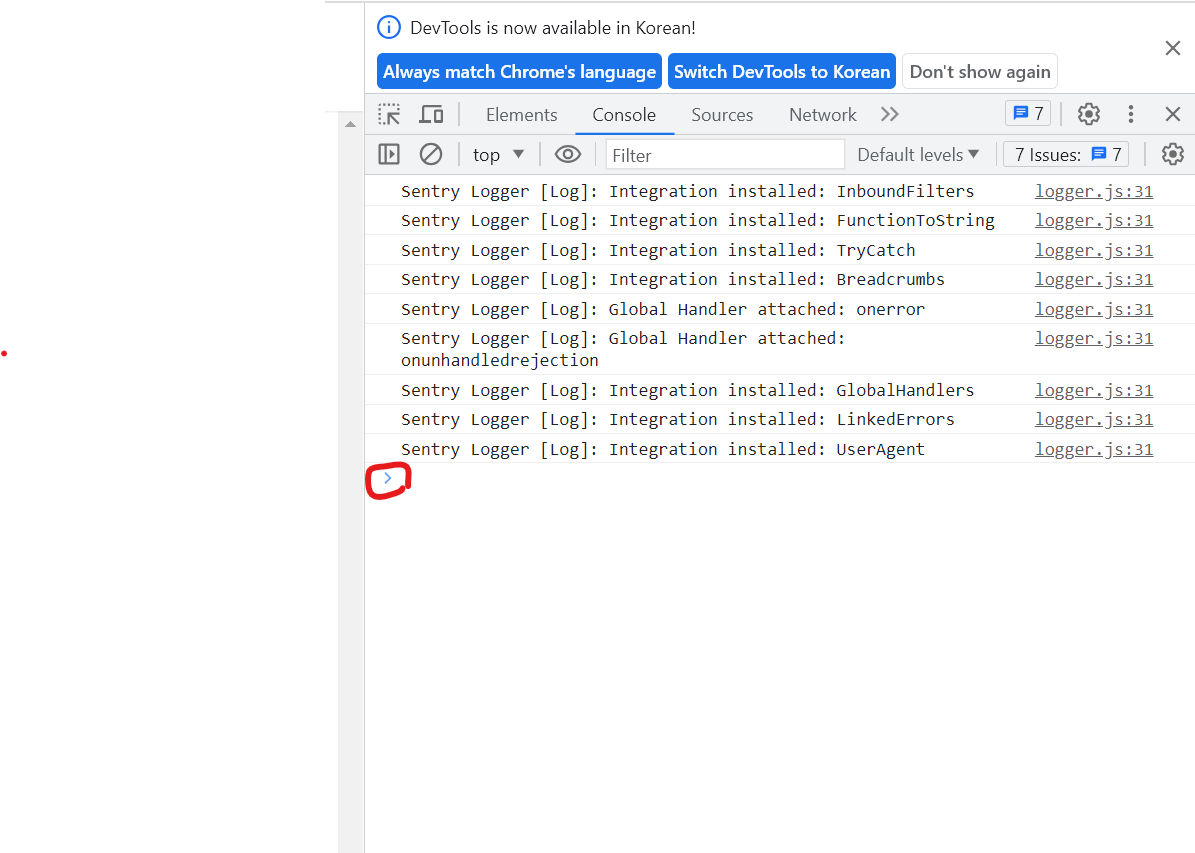 console로 들어가기 -> 빨간 색 동그라미 친 부분이 프롬포트이다.