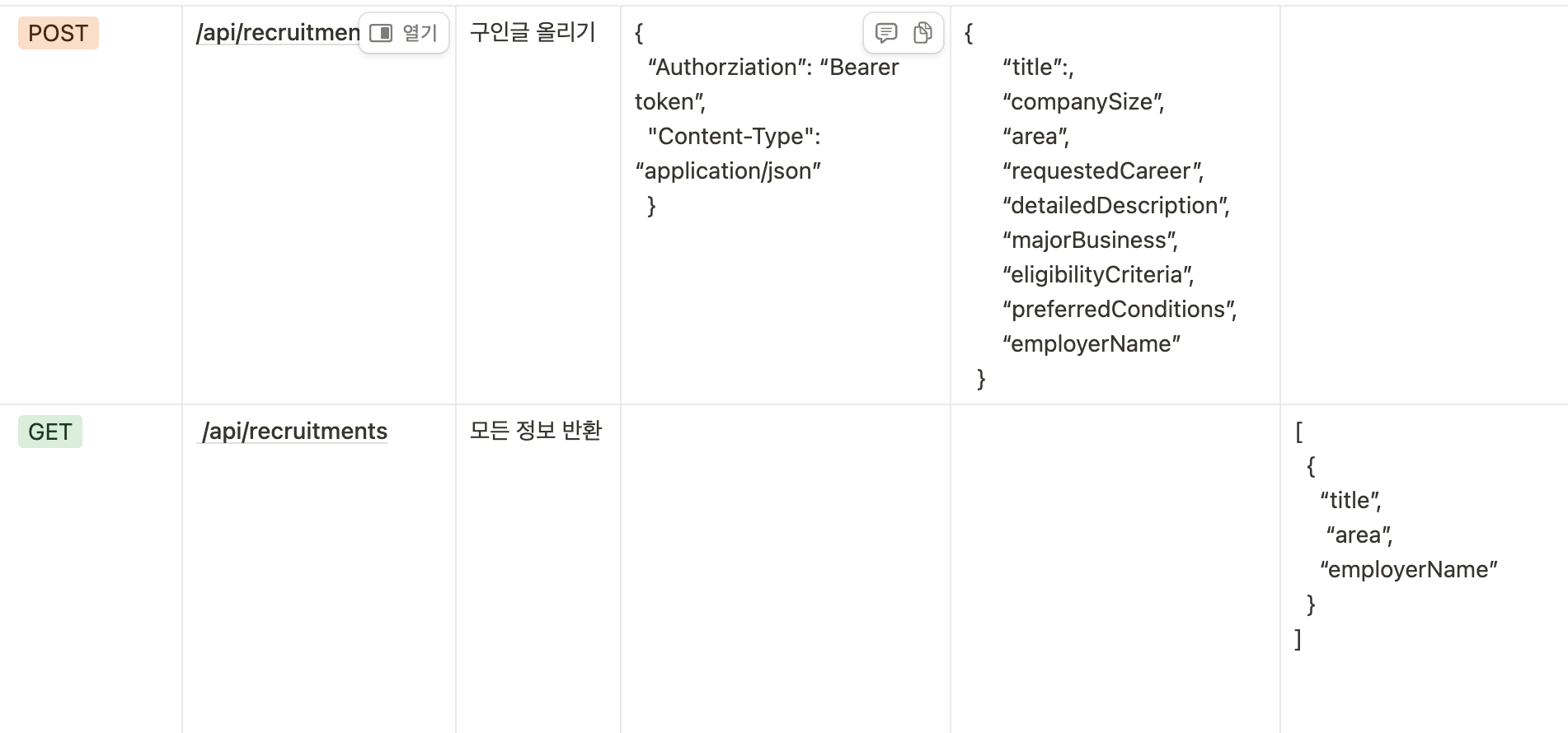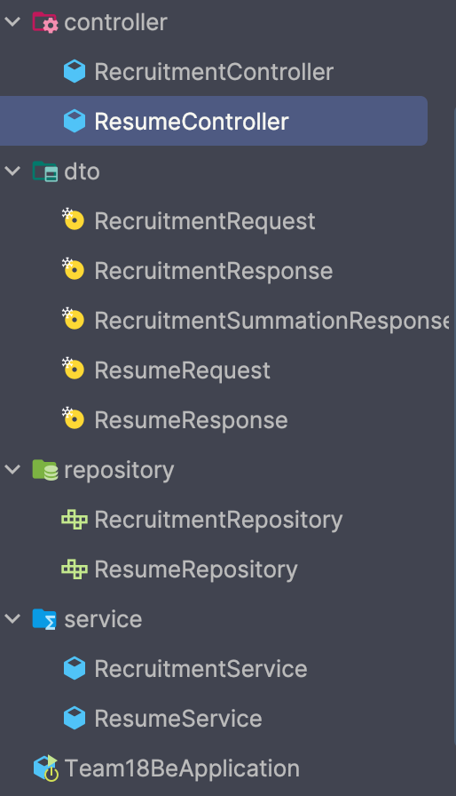 나는 api설계대로 구인글과 이력서 관련 부분의 controller을 개발했다.