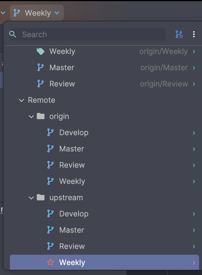 우리 프로젝트에서는 협업을 위한 repository가 있었다. 이 repository에는 master, feedback, weekly 등의 브랜치가 있었고, 나는 이 repository를 fork한 후 이 저장소를 내 컴퓨터에 clone 했다.