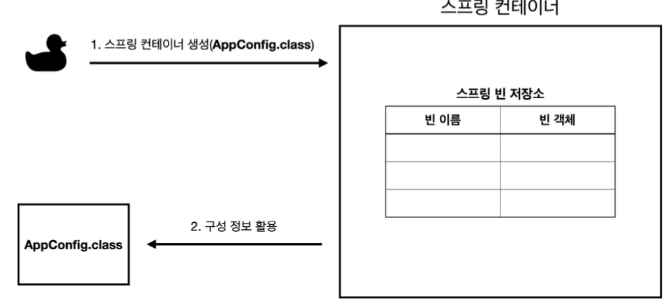 스프링 컨테이너는 파라미터로 넘어온 설정 클래스 정보로 스프링 빈을 등록한다.