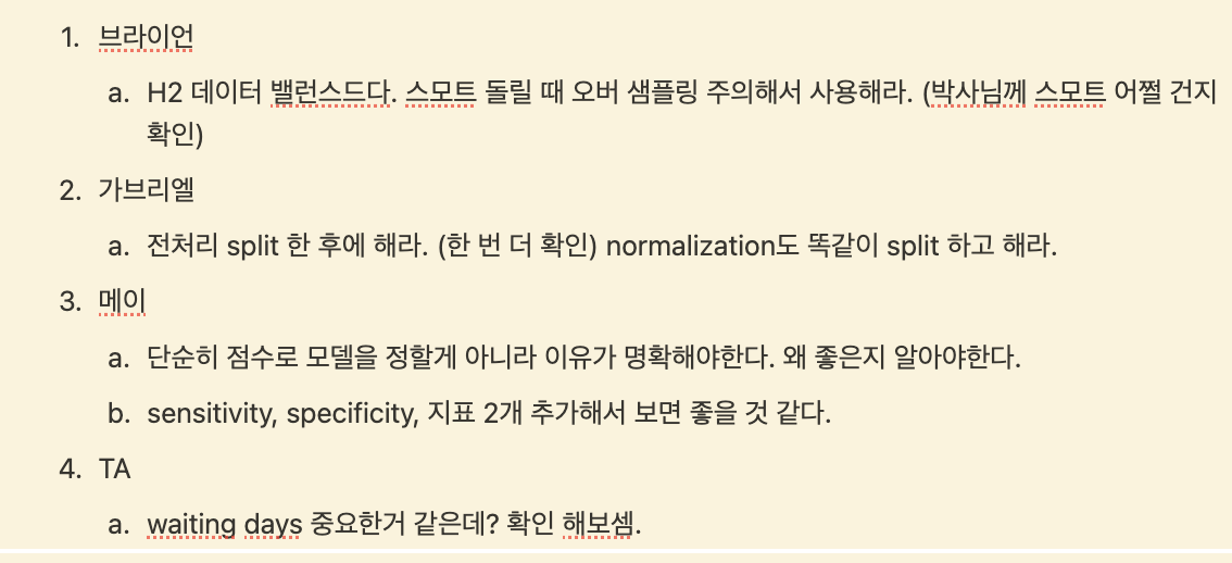 그리고 우리가 모델을 설정한 이유를 단순히 선행논문에서 사용했기 때문이라고 하였는데 이 모델이 왜 좋은지 더 알아보라고 하셨고, 모델을 평가하는데 다른 지표도 활용하는게 좋을것이라고 하셨다.