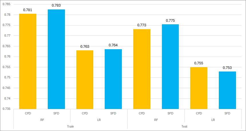 위와 같이 random forest에서는 전반적으로 sfd가 cfd보다 좋은 성능을 낸다는 것을 알 수 있었다.
