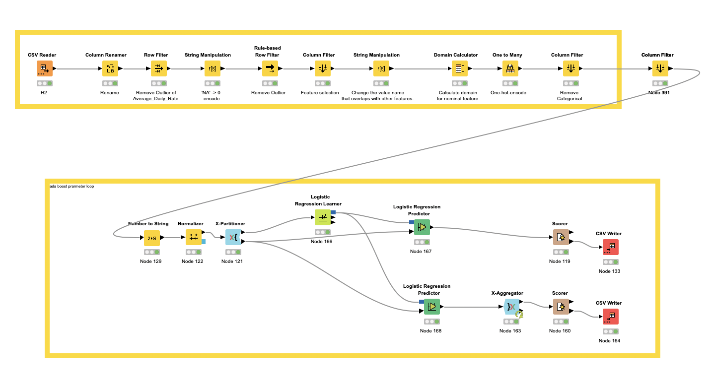 하이퍼파라미터 값은 parameter optimization loop 노드를 통해서 찾았다.