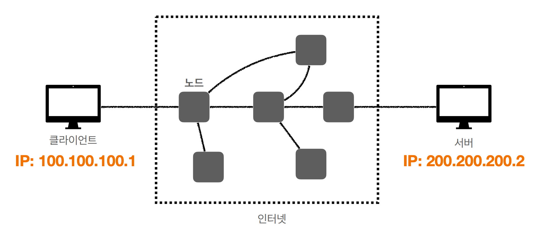 클라이언트와 서버는 ip주소를 통해 서로 정보를 주고받는다.