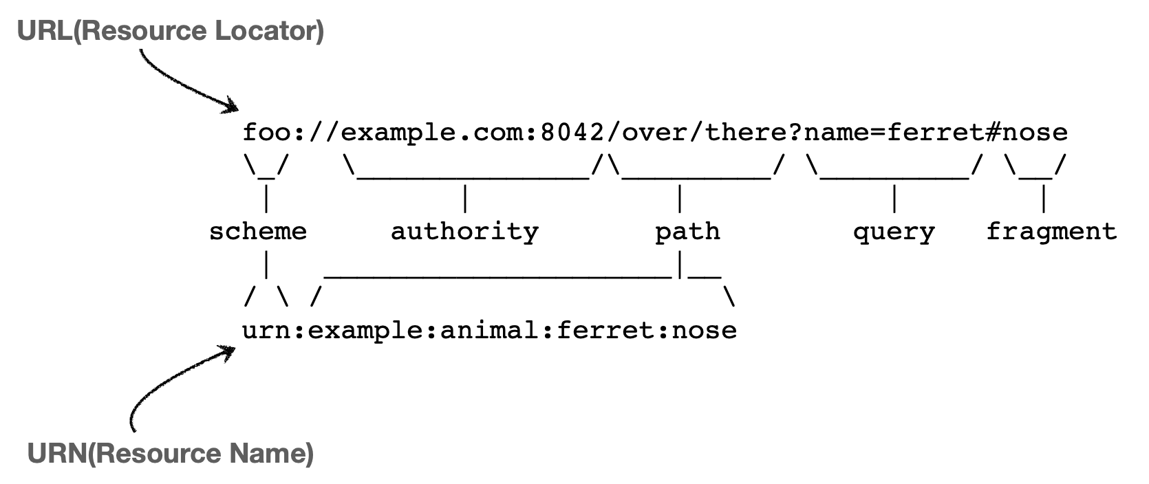 위와 같은 형태로 되어있고, URN은 리소스에 이름을 부여한 것인데, URN이름만으로 실제 리소스를 찾을 수 있는 방법이 보편화되어있지 않다.