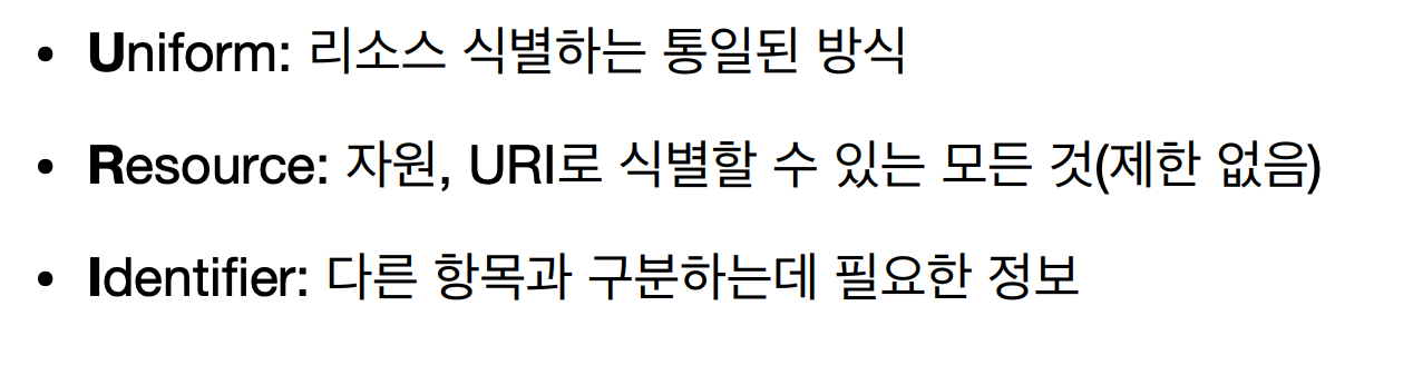 uri의 단어 뜻은 이렇다. 자원을 다른 항목과 구분하는데 필요한 정보라는 것을 뜻한다.