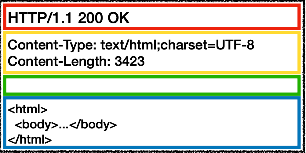 이렇게 HTTP 메시지는 시작라인, 헤더, 공백라인, 바디로 나뉜다.