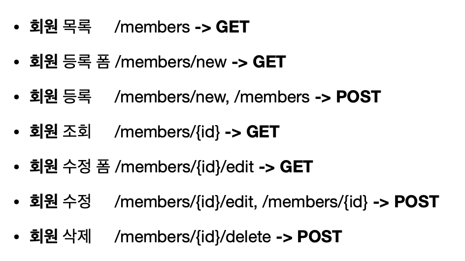 따라서 /new /edit /delete와 같은 컨트롤 URI를 사용한다.