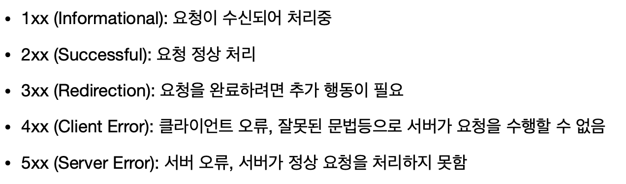이렇게 상태코드의 앞자리 부분에 따라 의미가 달라진다