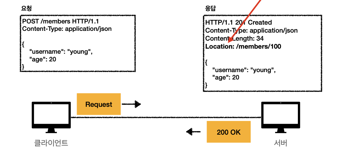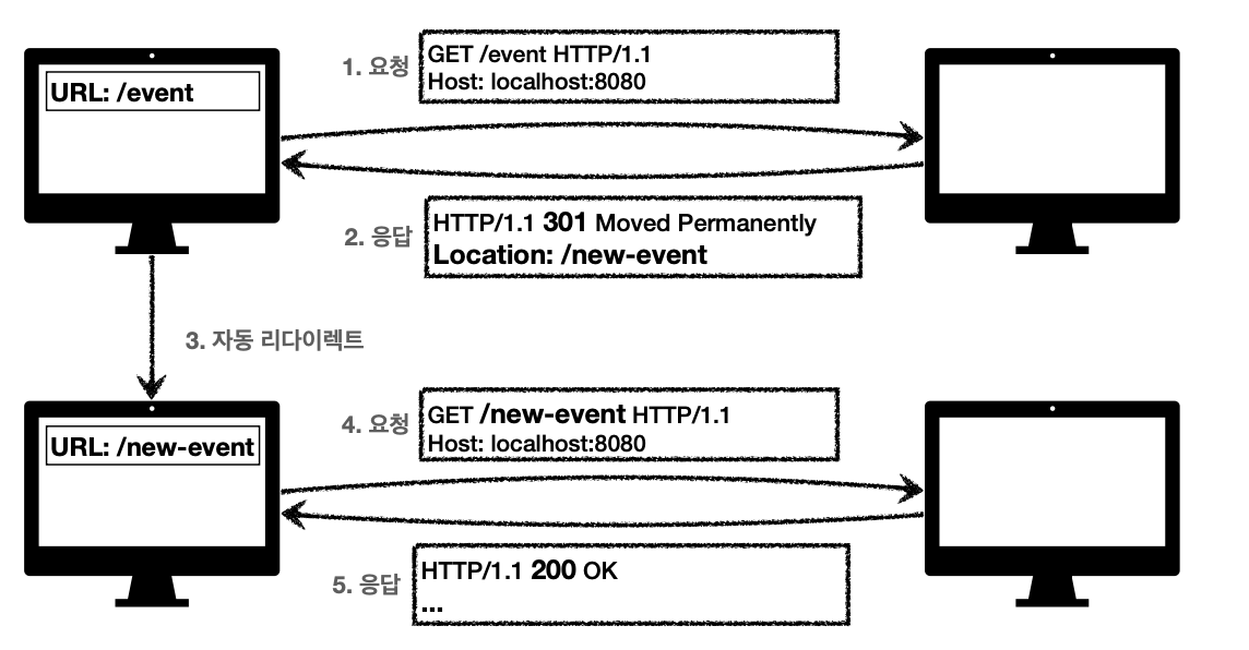 웹 브라우저는 3xx 응답의 결과에 Location 헤더가 있으면 그 위치로 자동으로 이동한다.(리다이렉트)