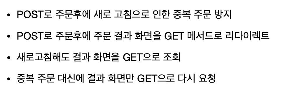 POST 주문 후에 웹 브라우저를 새로고침하면 -> 중복 주문이 될 수 있다..