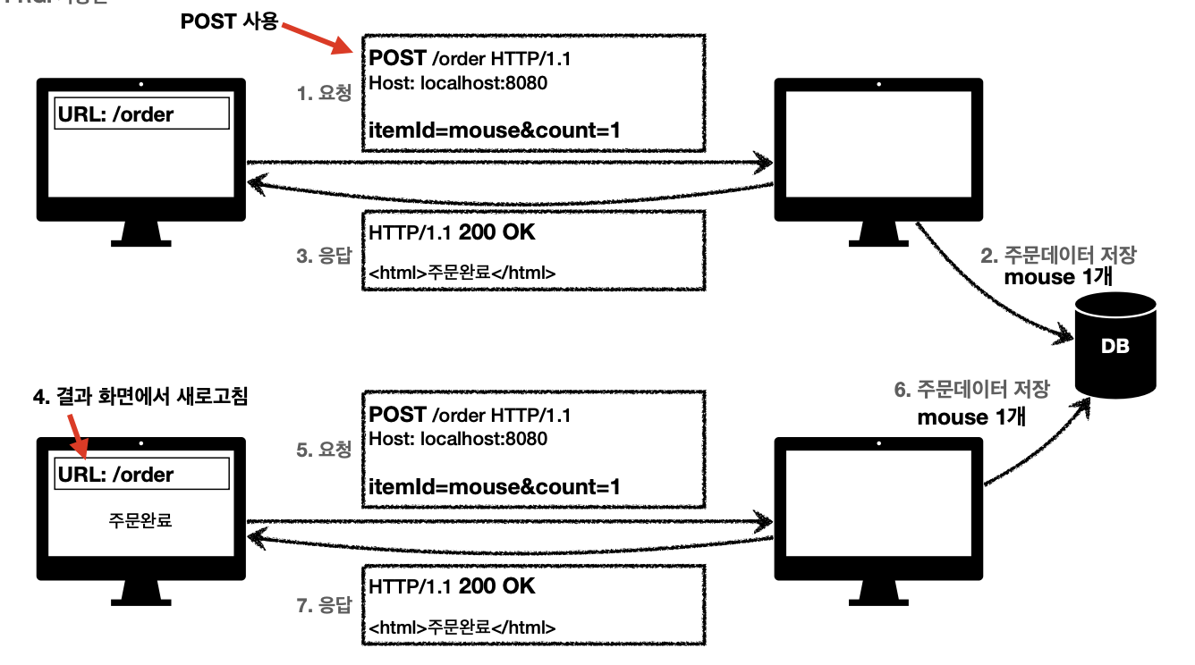 POST 주문 후에 웹 브라우저를 새로고침하면 -> 중복 주문이 될 수 있다..