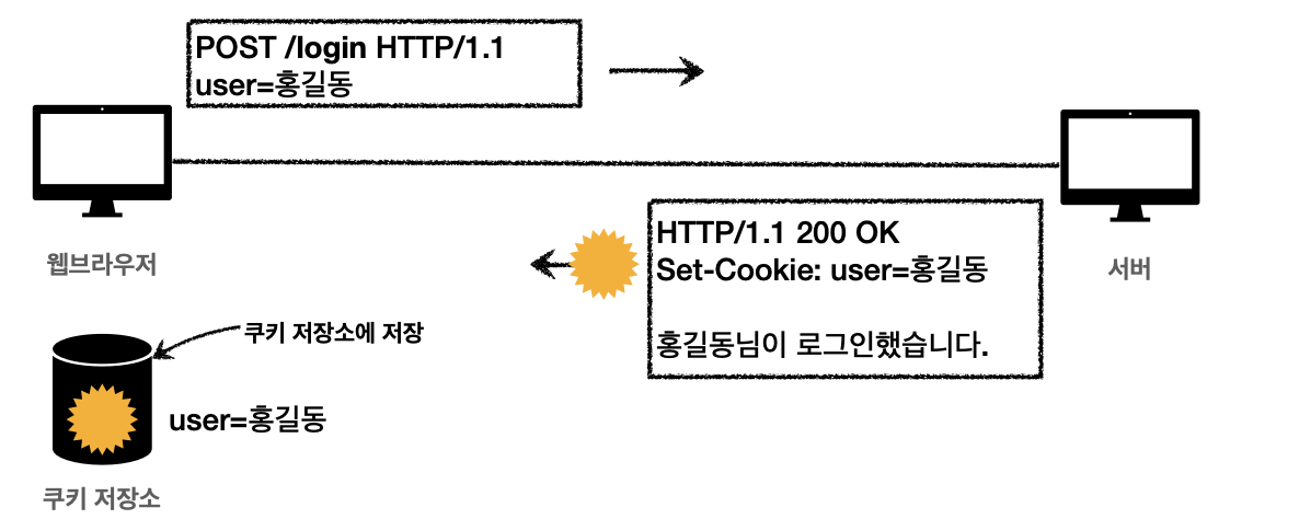 클라이언트가 쿠키 저장소에서 user = 홍길동을 꺼내서 이를 사용해서 요청하면 서버는 이 정보를 토대로 user정보를 추정한다.