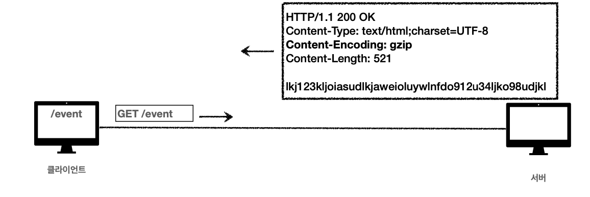 이 경우는 내용을 압축하여 전송하는 방식이다. 이 때 Content-Encoding을 통해서 압축 방식을 명시해야한다.