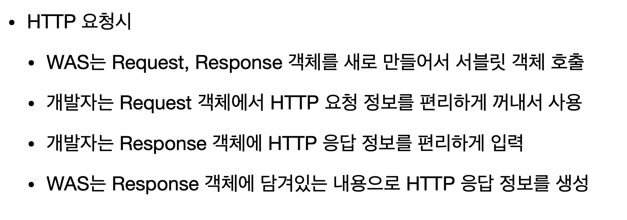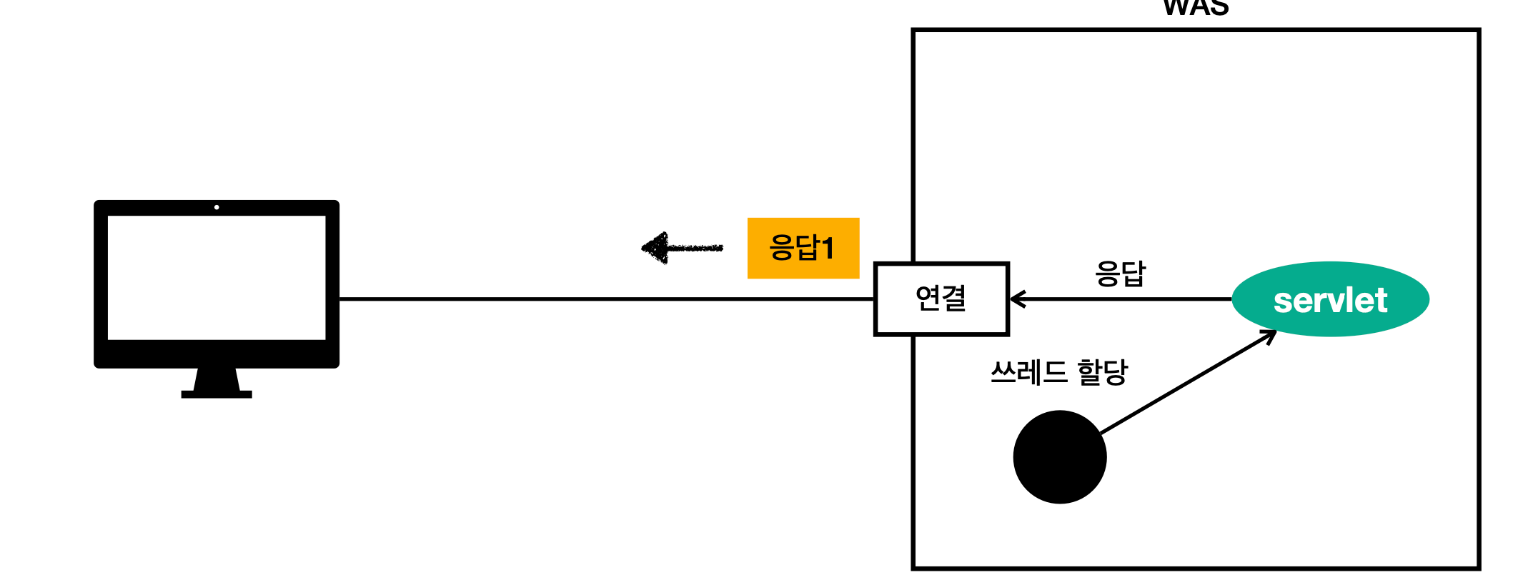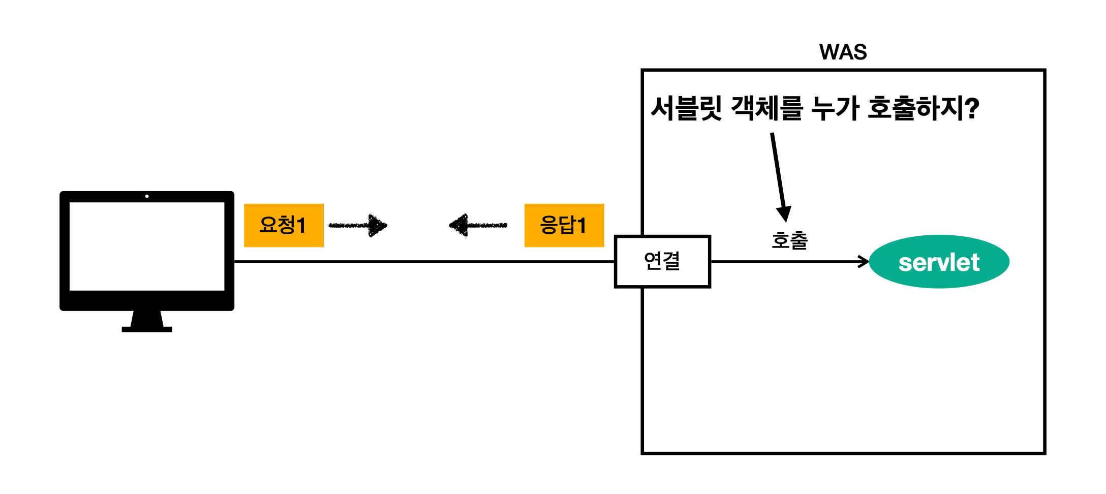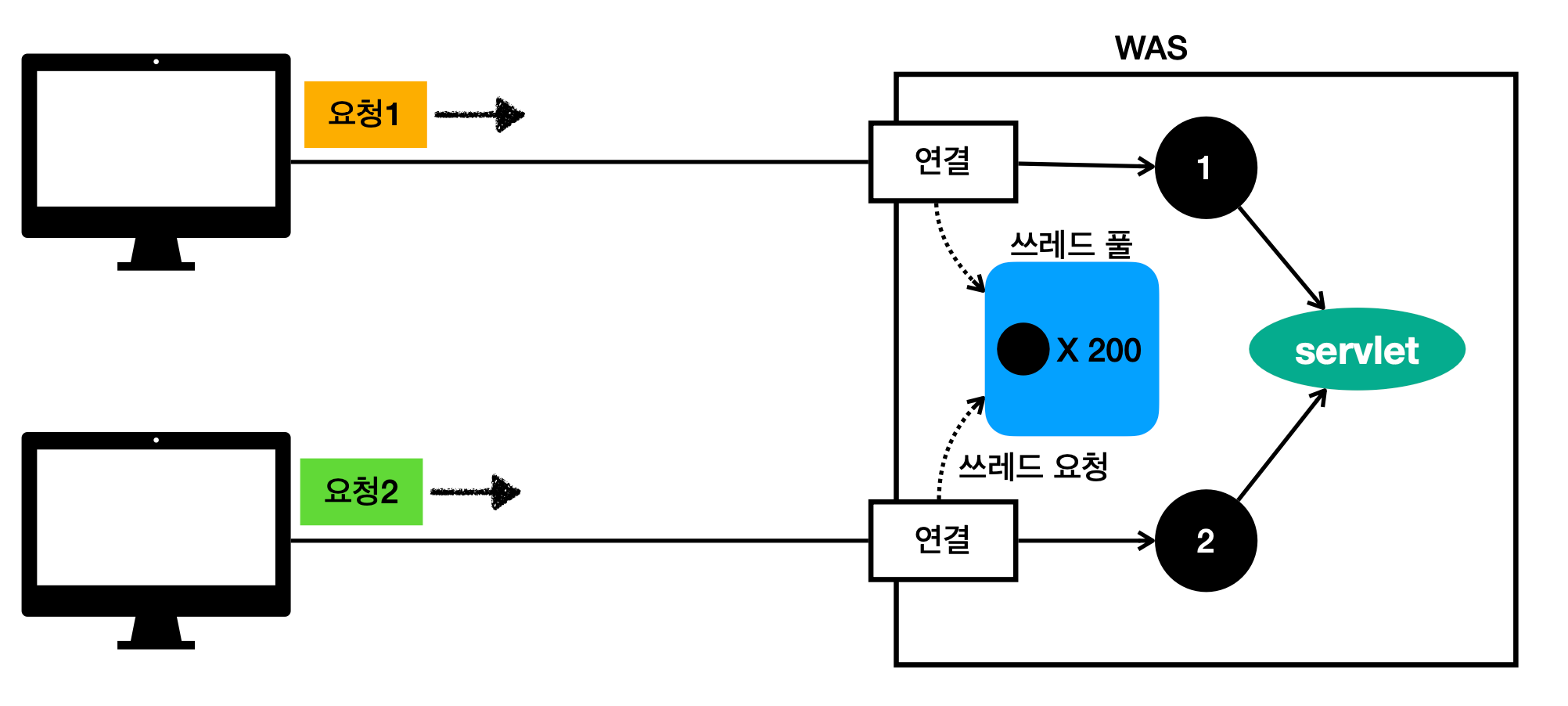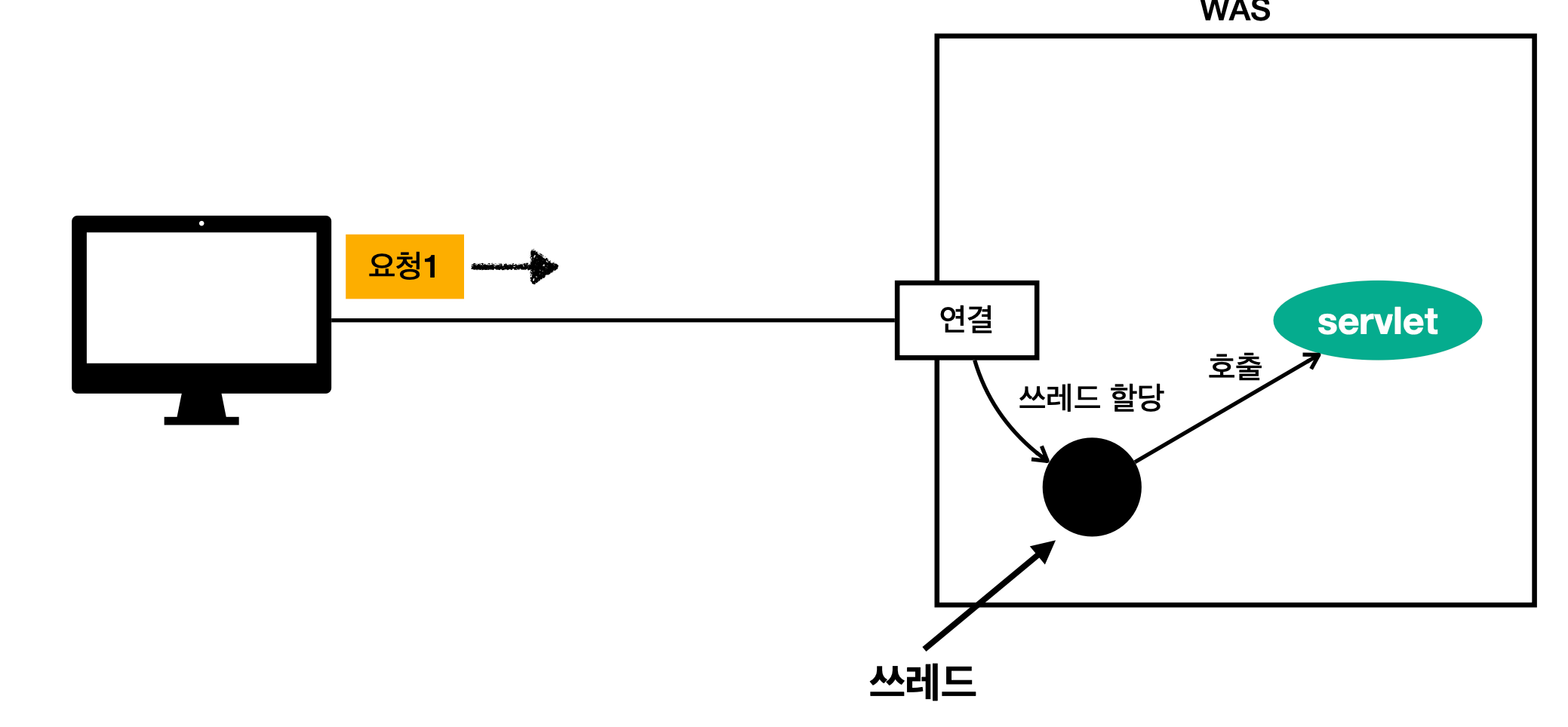 was에 요청이 오면 was 내의 쓰레드에 해당 일이 할당이 되고, 쓰레드가 서블릿객체를 호출한다.