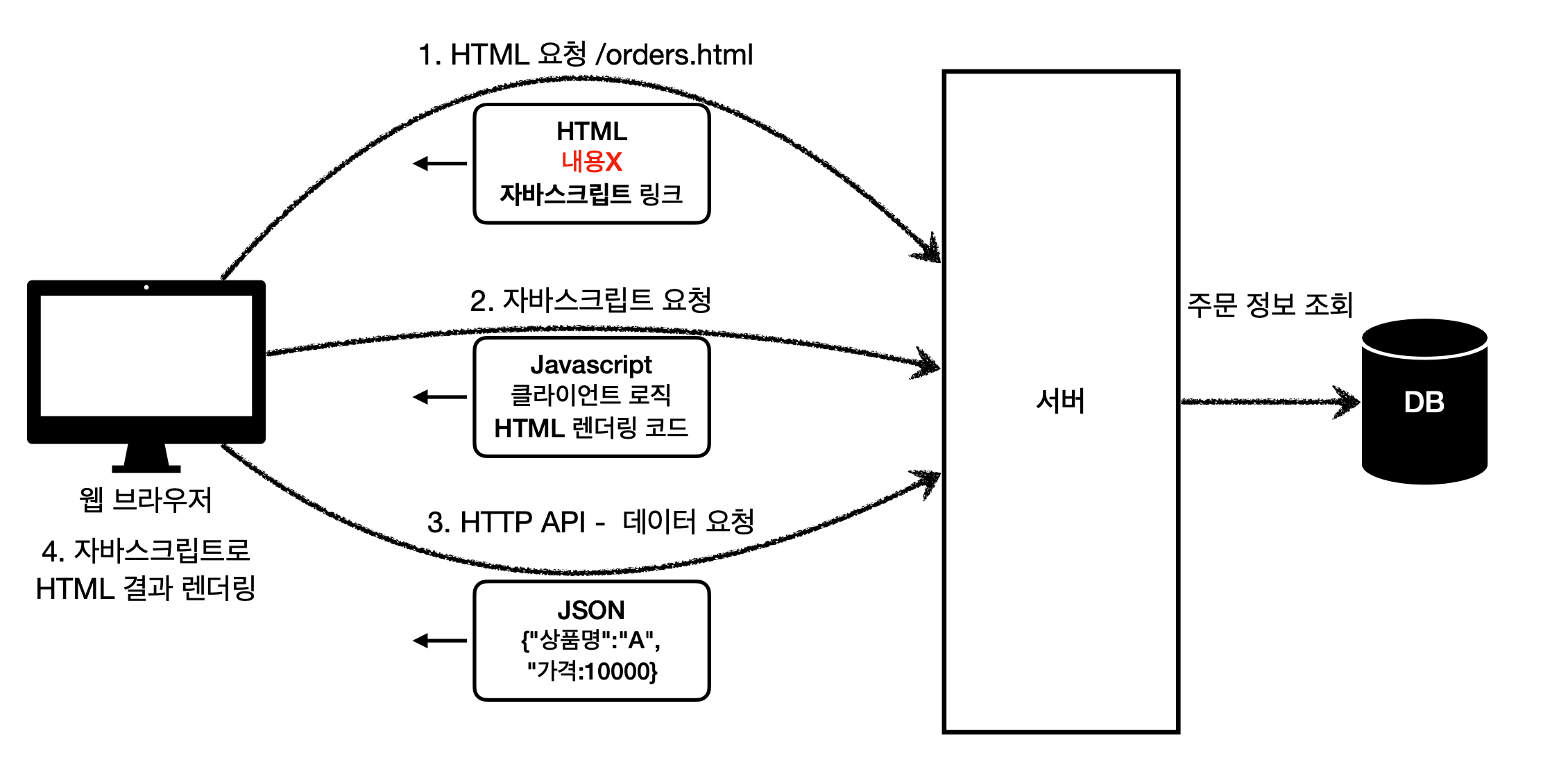 서버사이드 랜더링이다. HTML 최종 결과를 서버에서 만들어서 웹에 직접 전달한다.