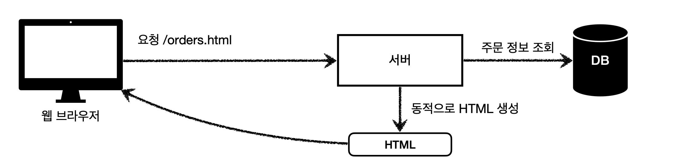 HTML 페이지는 동적으로 필요한 HTML 파일을 생성해서 전달한다.