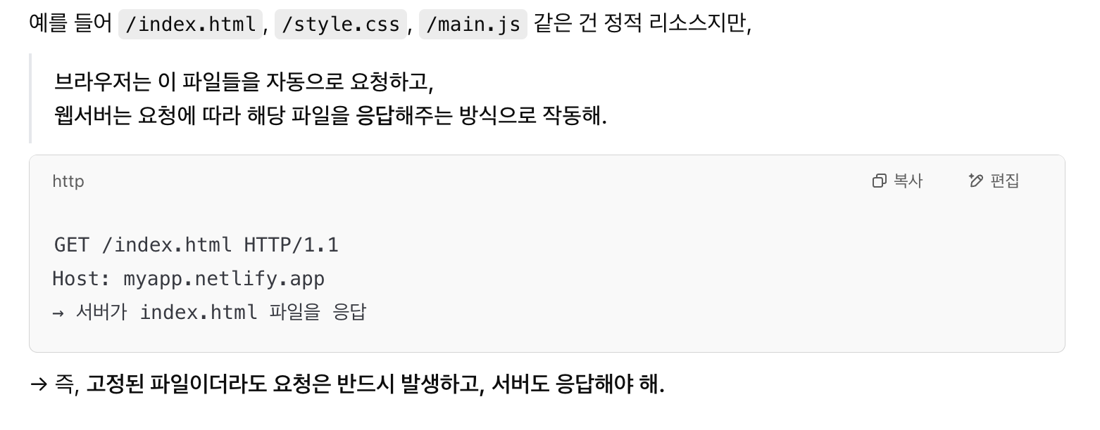정적 리소스는 이와 같이 단순하게 웹 브라우저에게 전달된다.