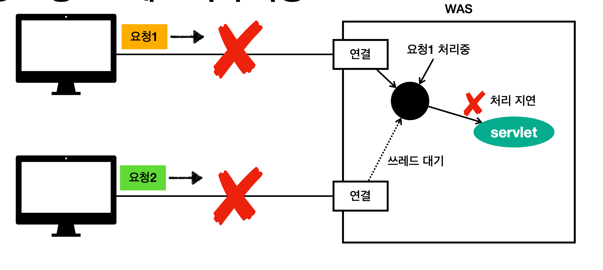 만약 쓰레드가 요청1을 처리하고있는데, 서블릿의 문제로 처리가 지연되면?