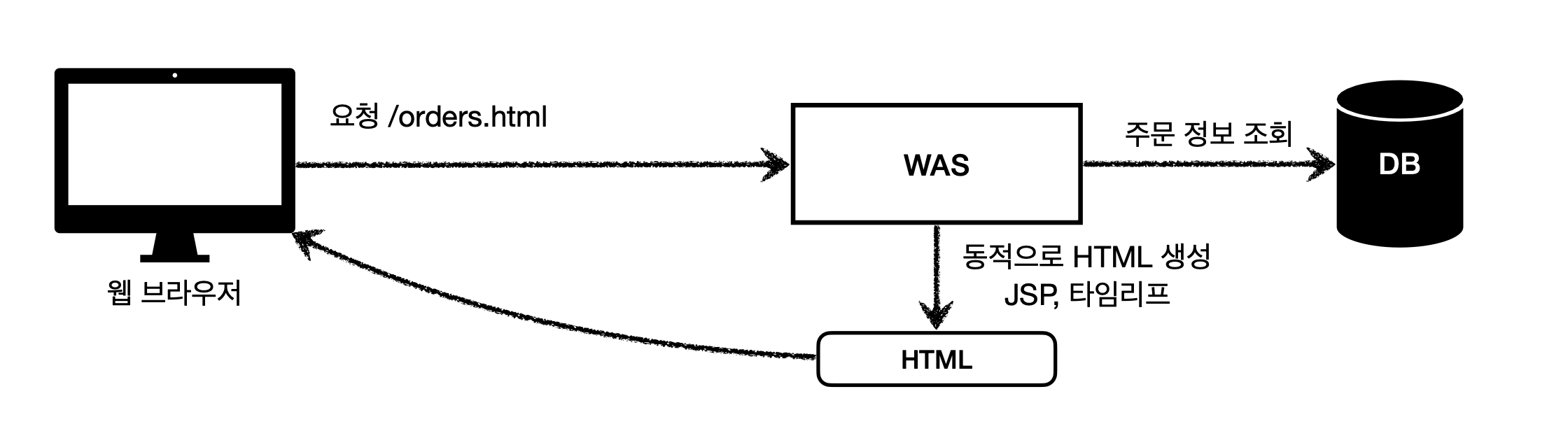 HTML 페이지는 동적으로 필요한 HTML 파일을 생성해서 전달한다.