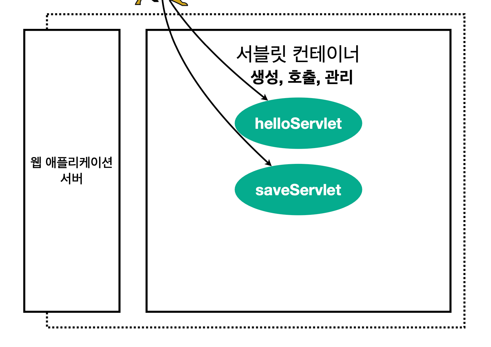 웹 브라우저에서 was에 http 메세지를 보내면, 이 때 서블릿 컨테이너 속 객체가 해당 메세지를 처리하고, 응답하는 일을 도와준다.