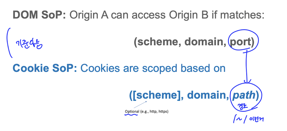 이렇게 쿠키와 dom의 sop 기준이 다르다.